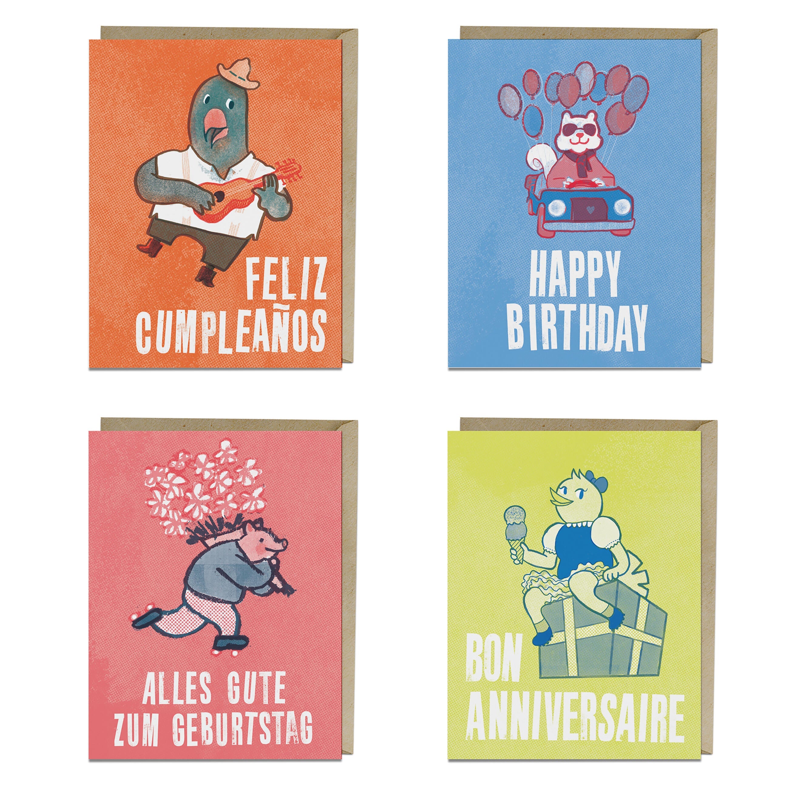 These birthday cards are really cute in a slightly nostalgic way. . . and perfectly all-purpose. Like, you could give one to a child OR a coworker OR your grandma. Plus, they say “Happy Birthday” in 4 different languages—English, French, German, and Spanish— which is just fun!
