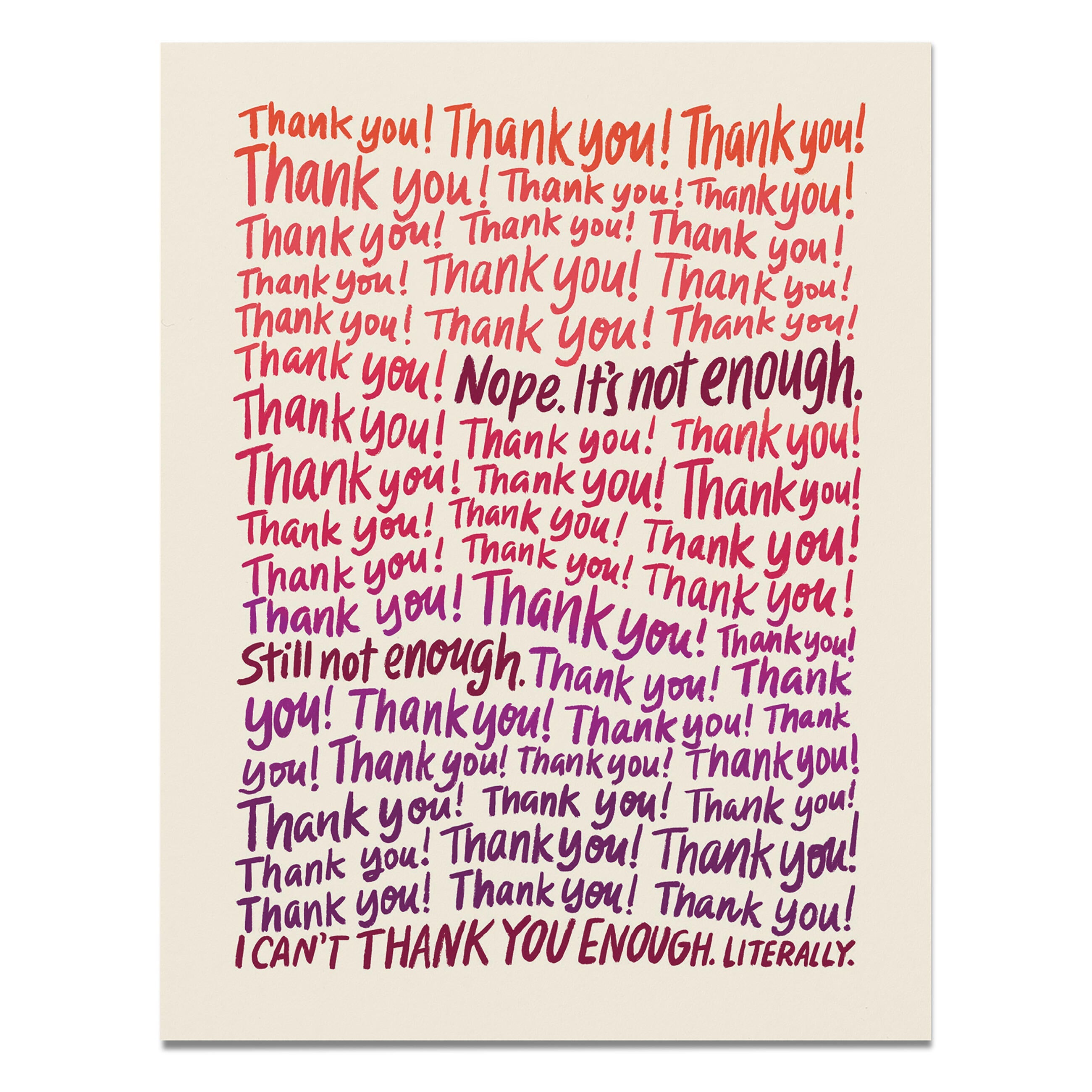 When a standard thank-you note doesn’t feel like quite enough, reach for this abundantly thankful thank-you card! It’ll make the infinite extent of your gratitude clear, even when it stretches all the way to like Pluto and back. Speaking of gratitude, aren’t you so lucky to have someone you feel THAT THANKFUL for in your life!? Like, wow. Wow! WOW.