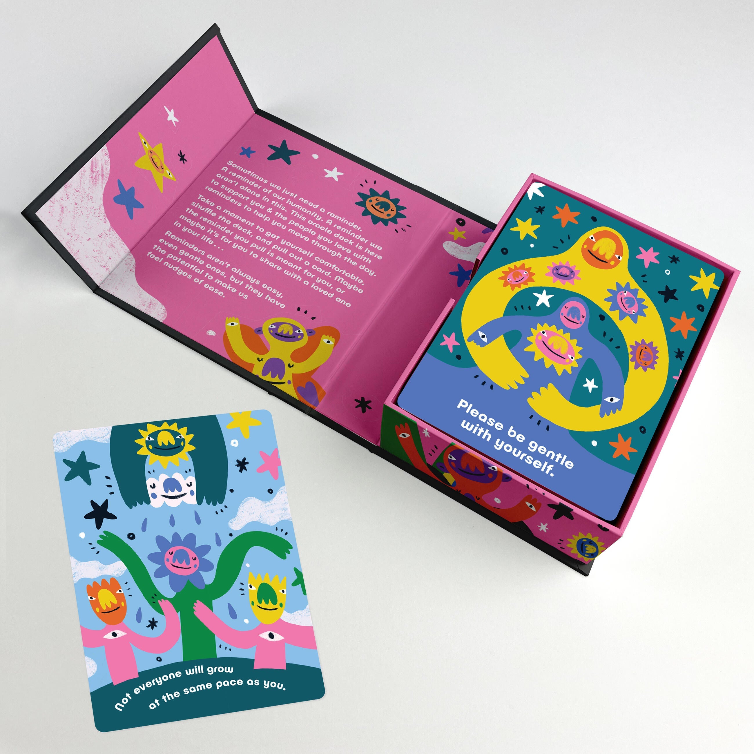 This daily oracle deck by artist & writer Barry Lee is all about emotional self-care. It’s not meant to tell you what to do, but to help you connect with your own inner knowing—to gently bring you back to your own center every day, and to add a little slice of tranquility & joy to your day. No matter what’s going on, you deserve to be reminded you are worthy of love and tender moments of comfort, beauty, and whimsy.