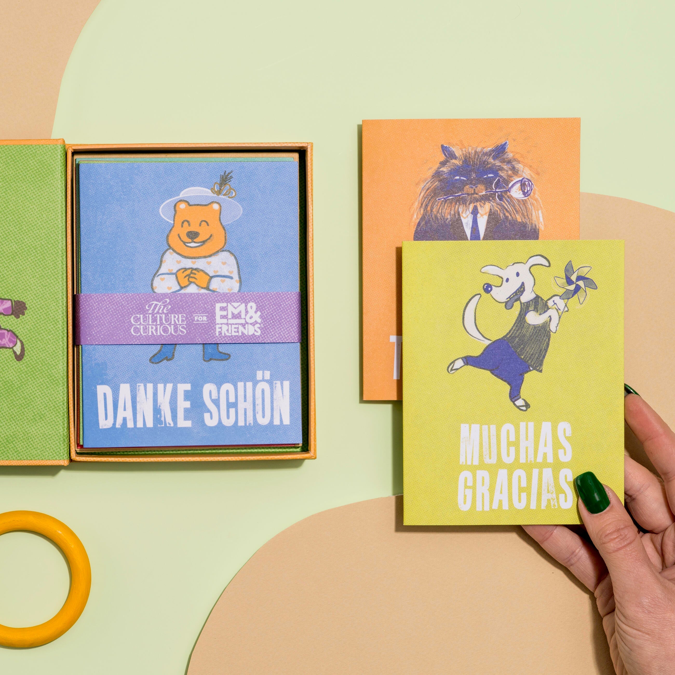 These thank you cards are really cute in a slightly nostalgic way... and perfectly all-purpose. Like, you could give one to a teacher OR a neighbor OR your own child. Plus, they let you say you’re thankful in 4 different languages—English, French, German, and Spanish— which is just fun!