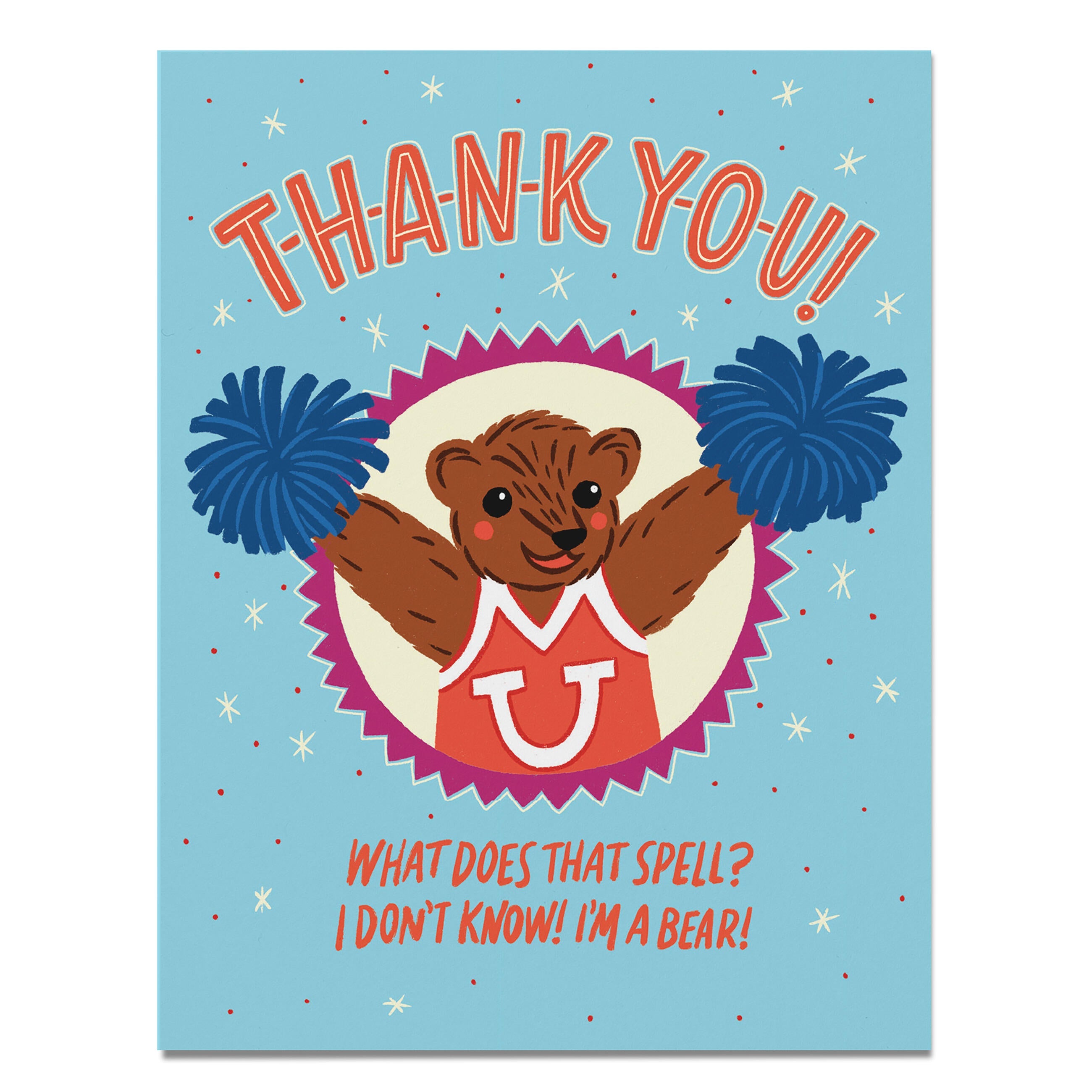 READY? OK! There is only one thing cuter than you, and it’s this bear, doing a cheer of thanks. This card is so sweet, you may just get a thank-you card thanking you for using this thank-you card. Got it?