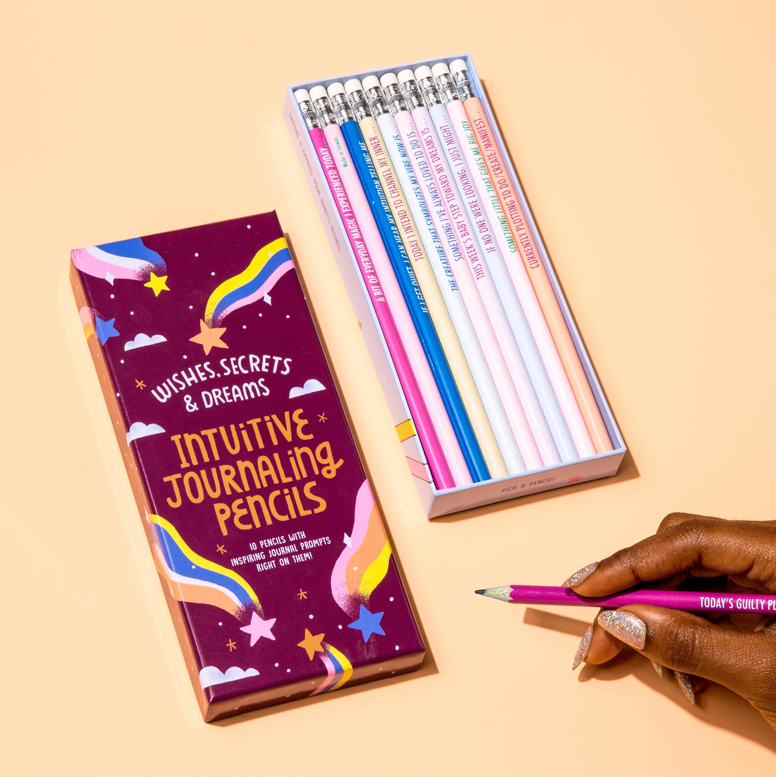 Close your eyes. Pick the pencil that feels just right. Then… just write. With these cool pencils, you’ll never be at a loss for what to journal about again. We’ve created something we think is truly unique, and our intuition tells us your intuition will agree.