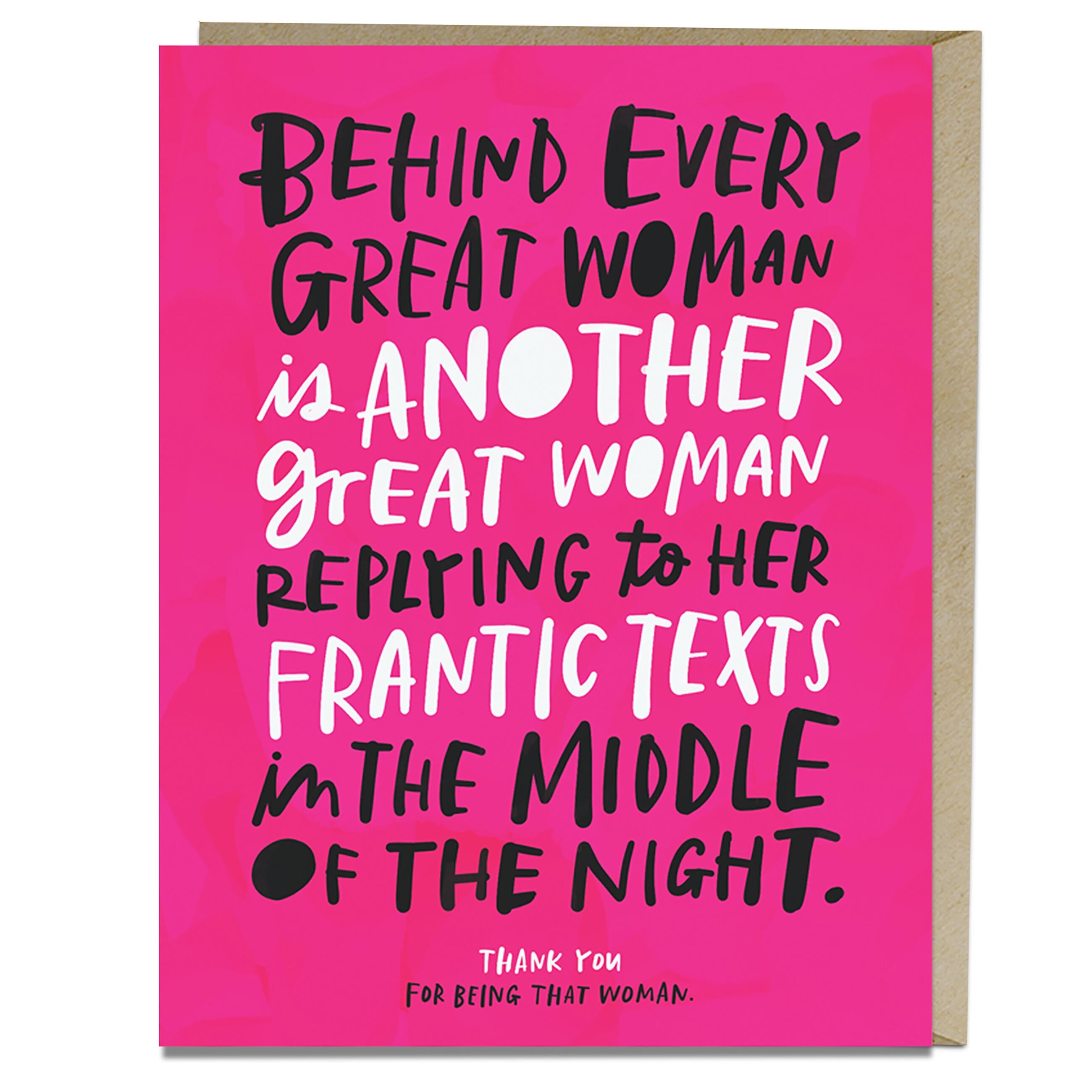 Trapped in a restaurant bathroom trying to figure out how to gracefully exit from a bad first date? Check. Lying awake obsessing over the current state of world affairs? Check. If you’re lucky enough to have a friend who’s always there for you, let her know you appreciate her.