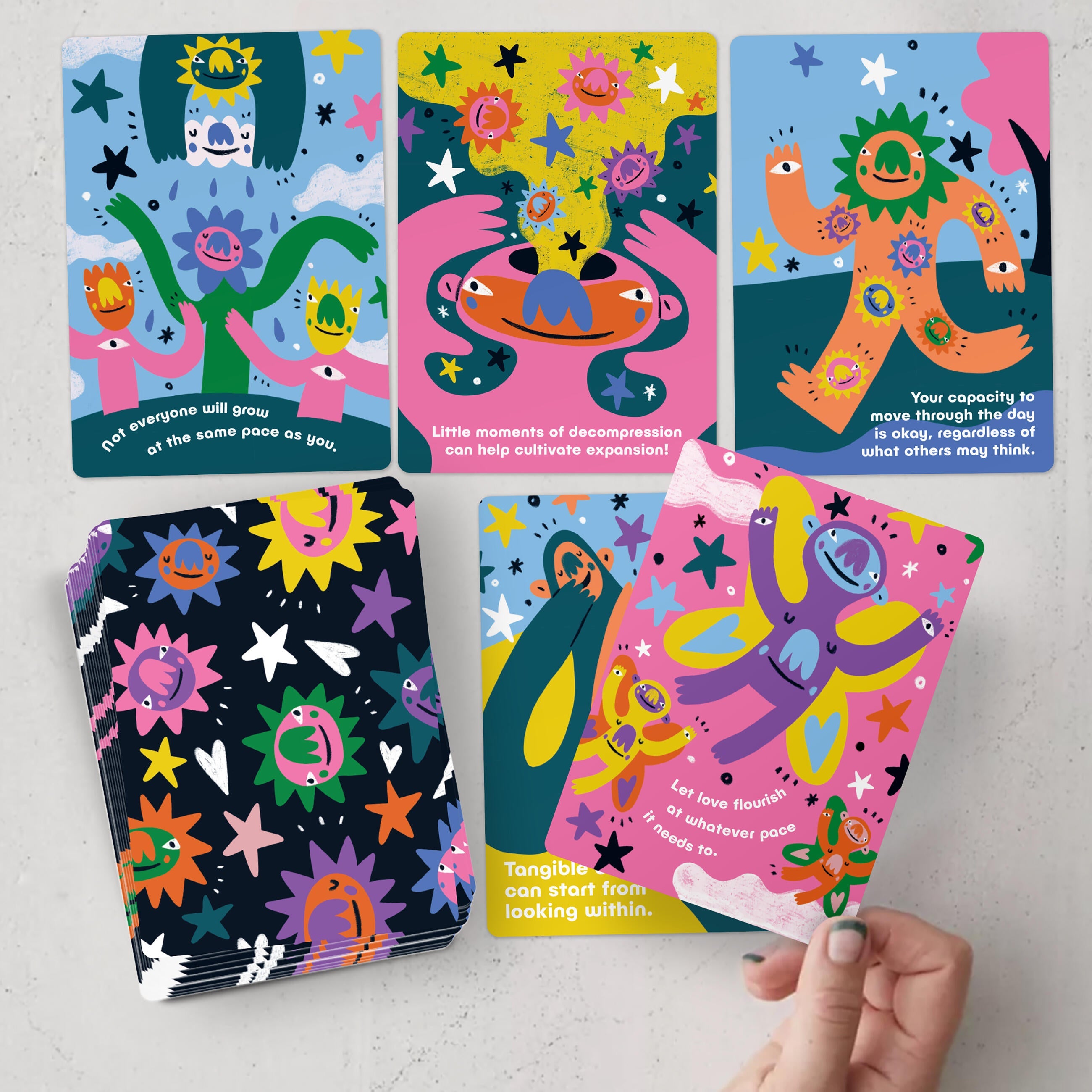 This daily oracle deck by artist & writer Barry Lee is all about emotional self-care. It’s not meant to tell you what to do, but to help you connect with your own inner knowing—to gently bring you back to your own center every day, and to add a little slice of tranquility & joy to your day. No matter what’s going on, you deserve to be reminded you are worthy of love and tender moments of comfort, beauty, and whimsy.