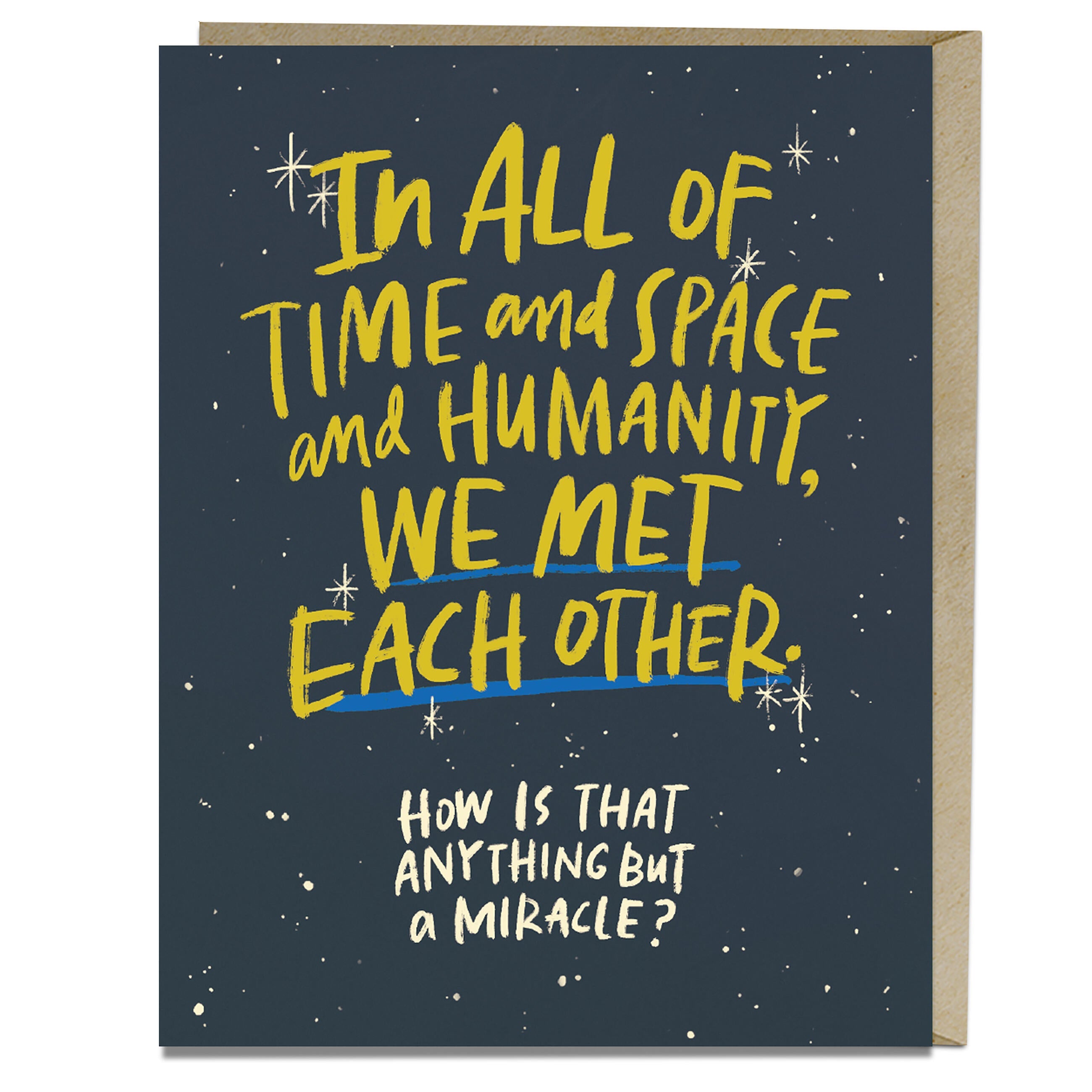 There are over 100 BILLION stars in our observable universe. There are 7.5 BILLION people on planet Earth. Even if Kevin Bacon is only six degrees away… you'll probably never meet him. Yet, somehow, you and your person managed to find each other. That, friends, is truly a miracle.
