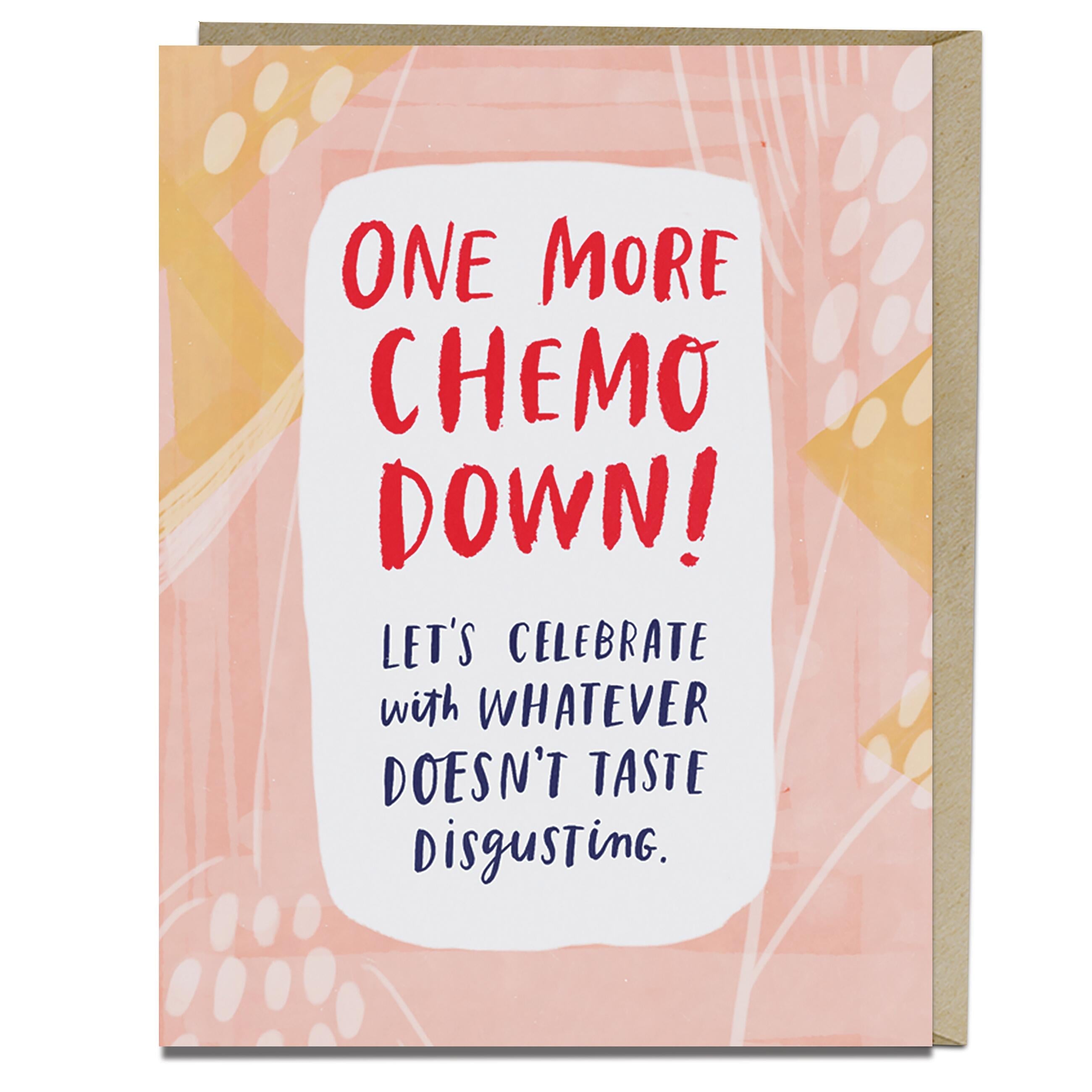It's completely applicable to celebrate with vanilla soft serve and cranberry juice, this card, or something else (a Porsche?) every time someone you love gets through a chemo session. Because that shit is really hard.