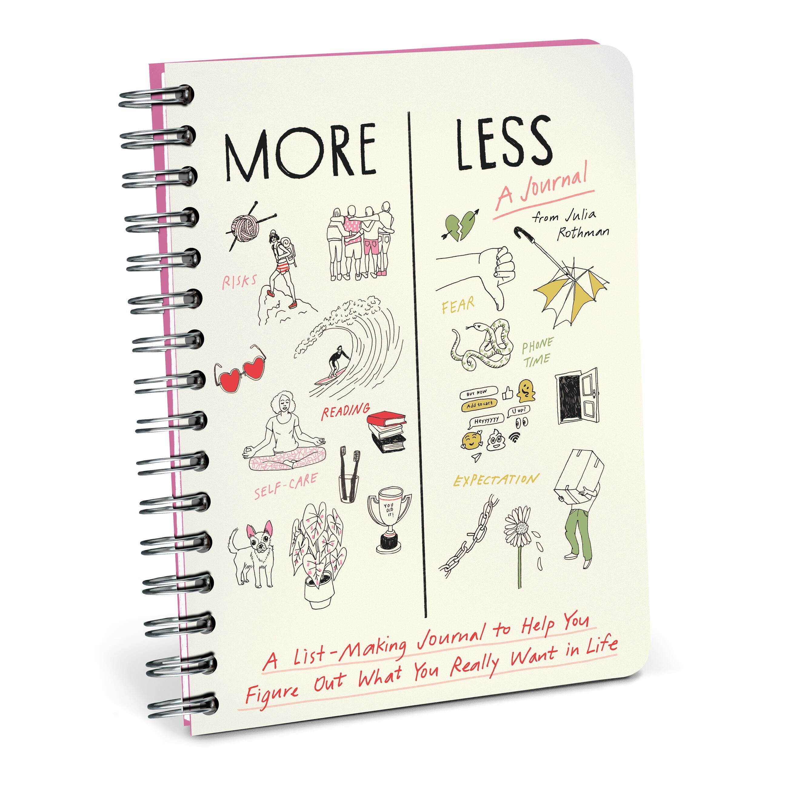 List-make (or draw, or doodle!) your way to your ideal existence with a fresh, no-pressure approach to goal setting. Deciding what you want MORE or LESS of in your life is a creative and easy way to figure yourself (and your shizz) out. From the creative brain of artist and New York Times columnist Julia Rothman, this fun, low-key journal helps you clarify what you’d like to invite (and un-invite) into your life. With topics like relationships, food, and travel + many, many more, you’ll find yourself listing your way to a fulfilling and more intentional life in no time. This beautifully illustrated journal created with list-ma...