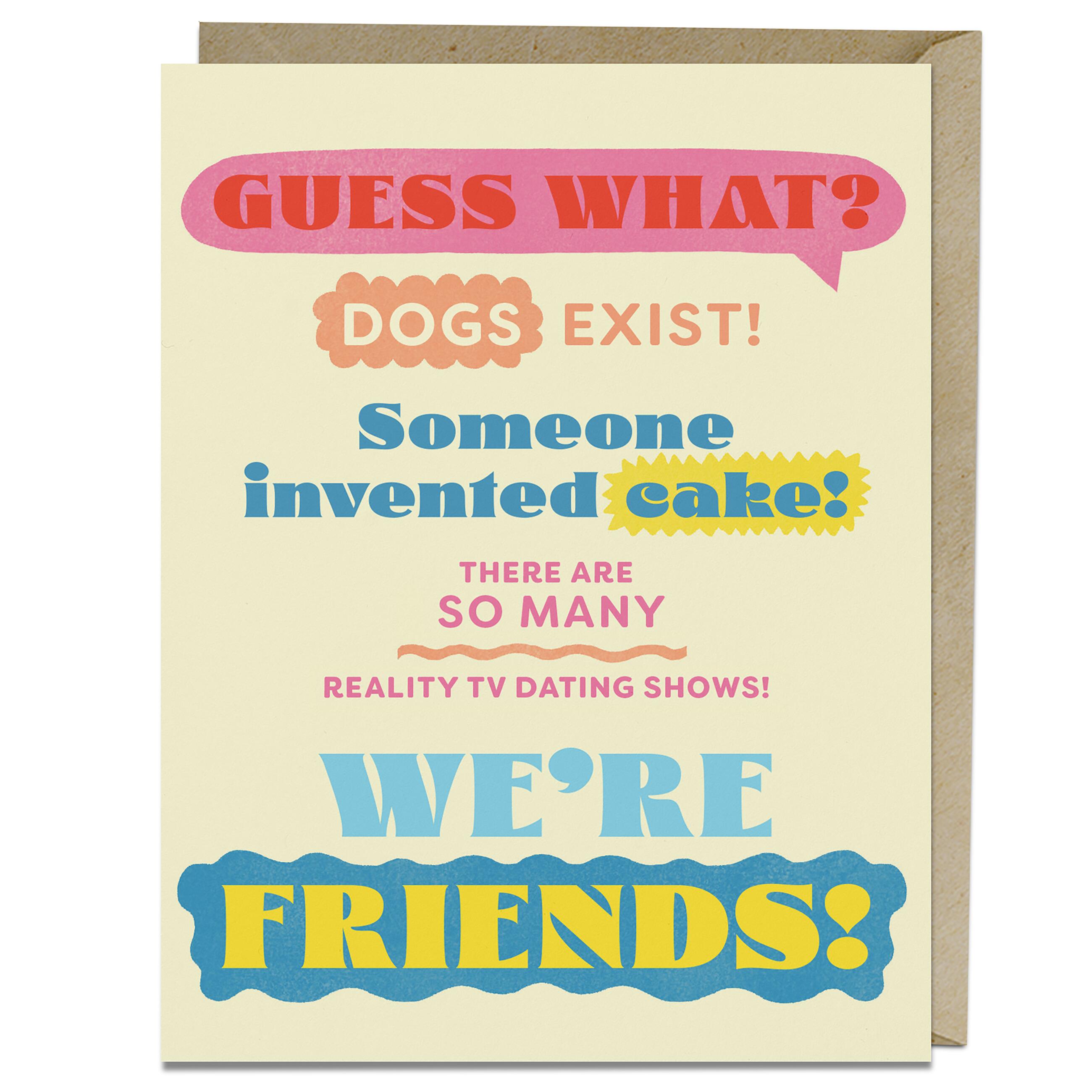 OMG. Sometimes the world is like so heavy and awful and if it were possible to morph into a snail and live in a garden with our house on our back, we'd be packing right now… but since it's not, thank goodness for dogs, cake and FRIENDS! This card lets your best buddy know that they are a living breathing bright spot in your life.
