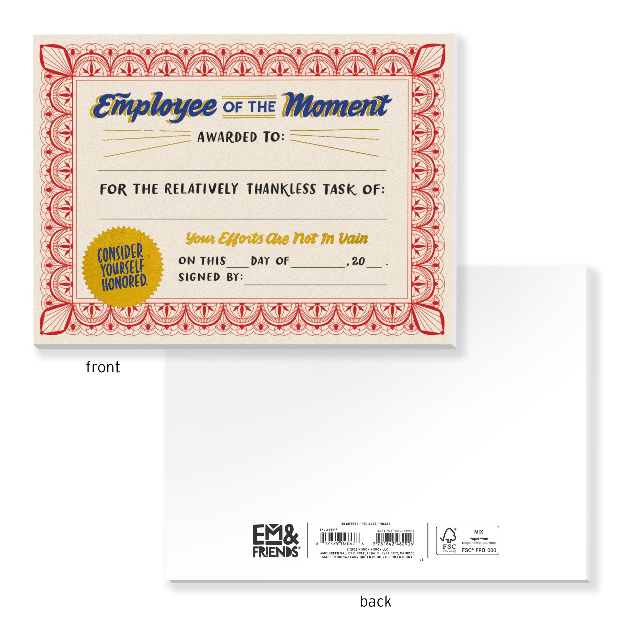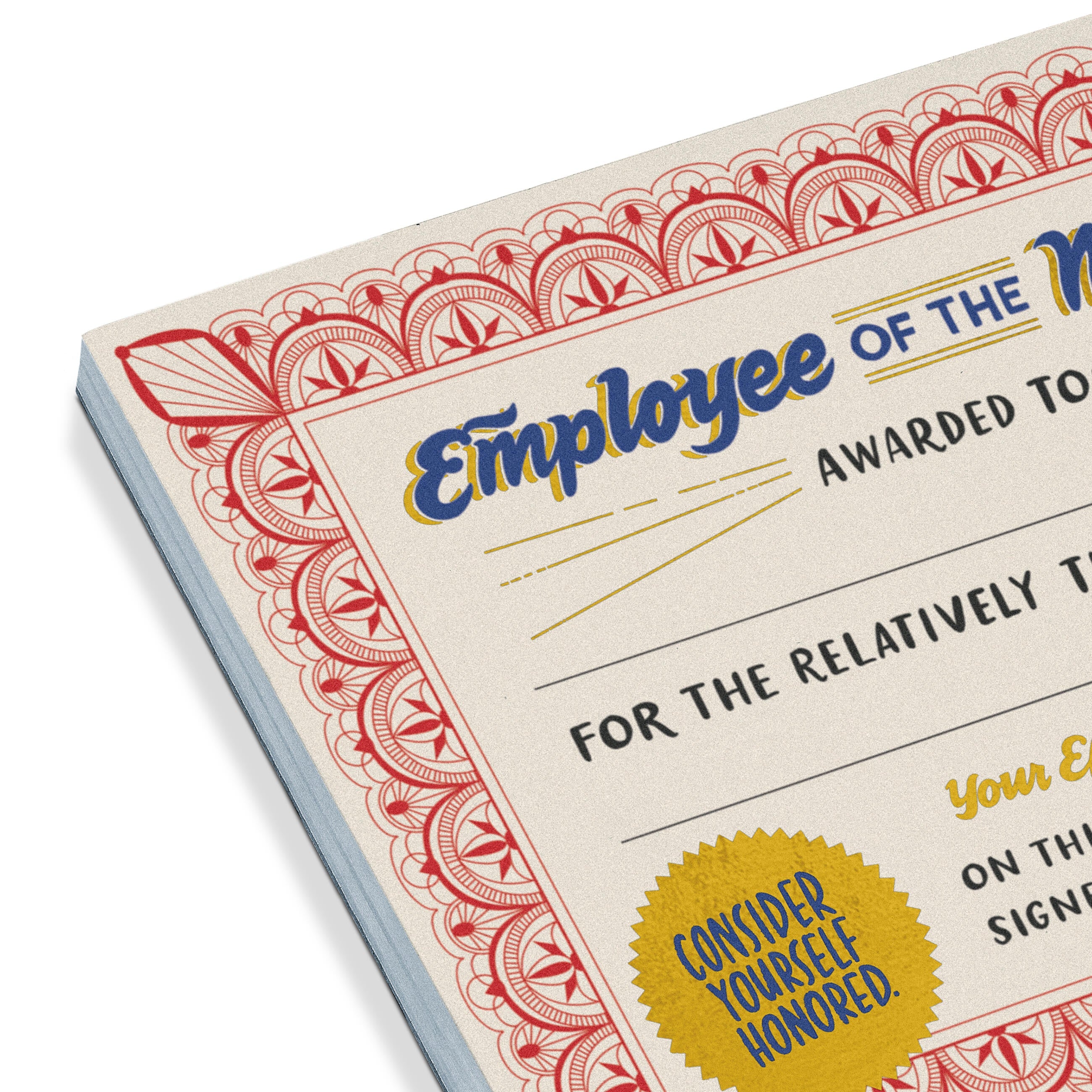 We've refreshed our Employee of the Moment Notepad with festive gold foil and even-more official-ish design! Award your coworkers for those acts of everyday valor that never get enough recognition. Replacing the copier paper. Sharing credit with others. Being cheerful, but not annoyingly perky. (That's at LEAST as important as punctuality, isn't it?)