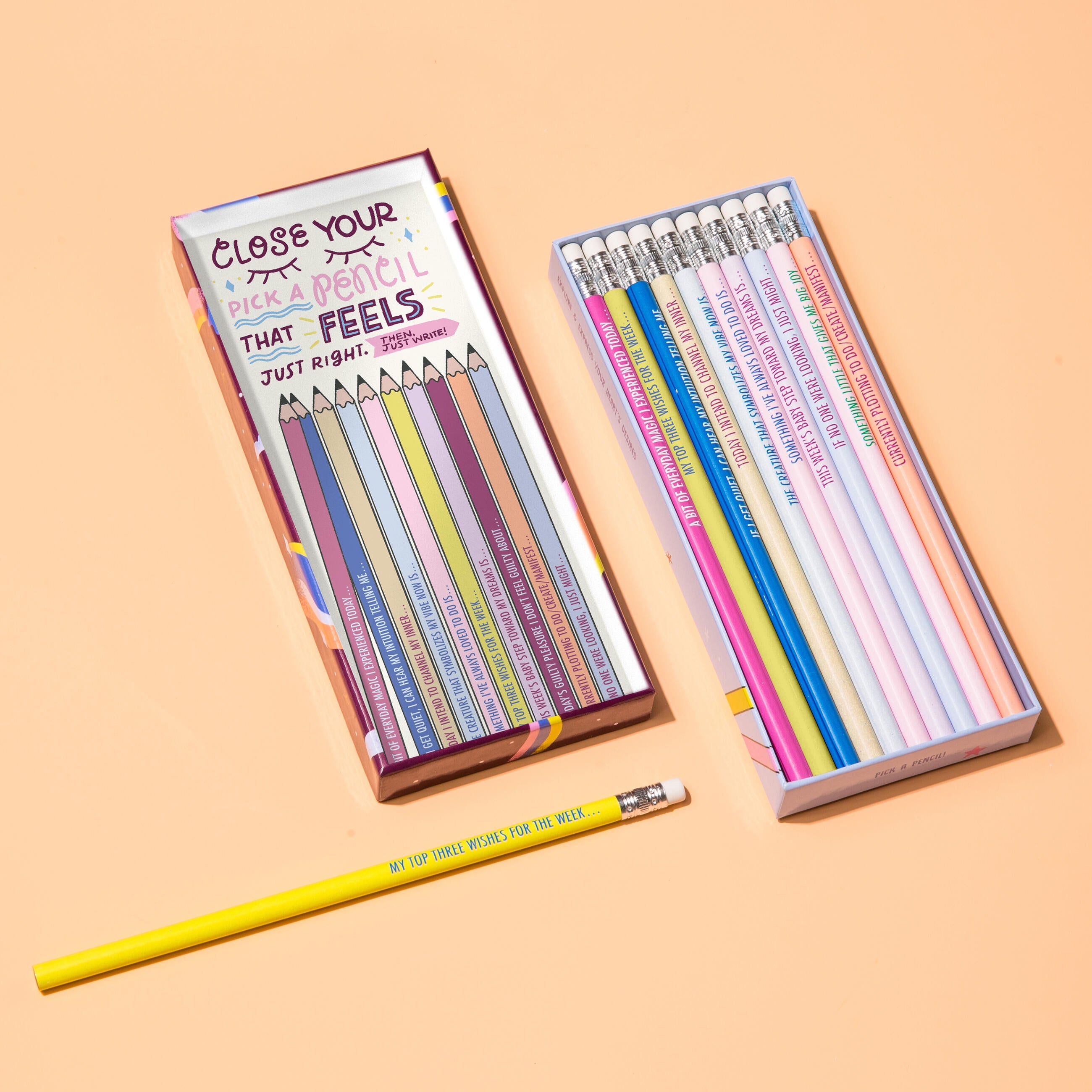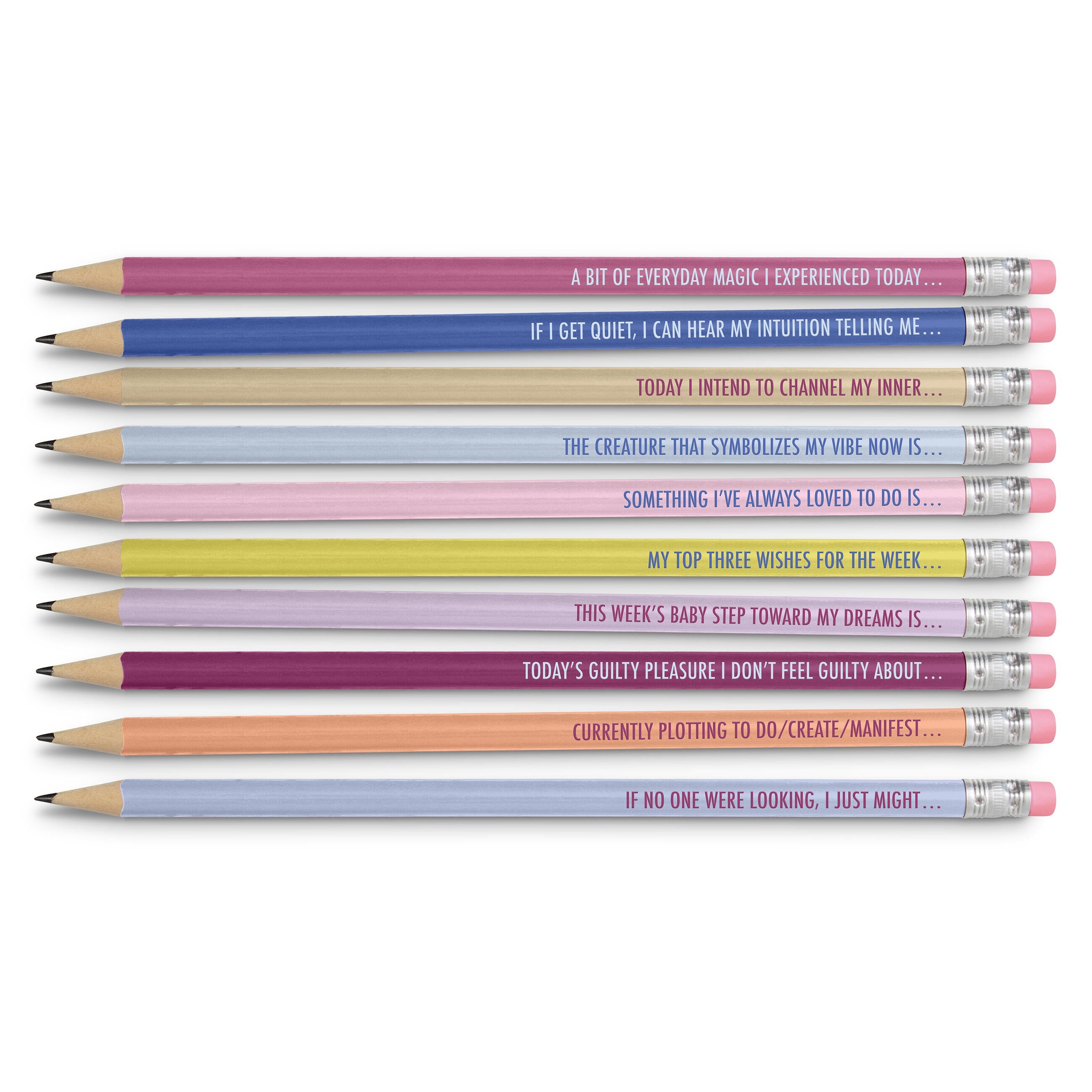 Close your eyes. Pick the pencil that feels just right. Then… just write. With these cool pencils, you’ll never be at a loss for what to journal about again. We’ve created something we think is truly unique, and our intuition tells us your intuition will agree.