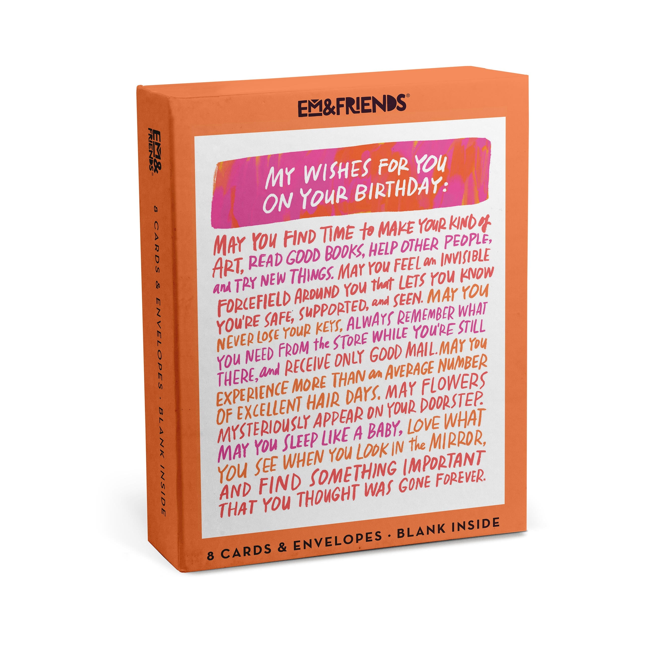 We’ve boxed up 8 of these birthday beauties just for you. Now you’ll always have just the right birthday card on hand, that already says just the right thing.