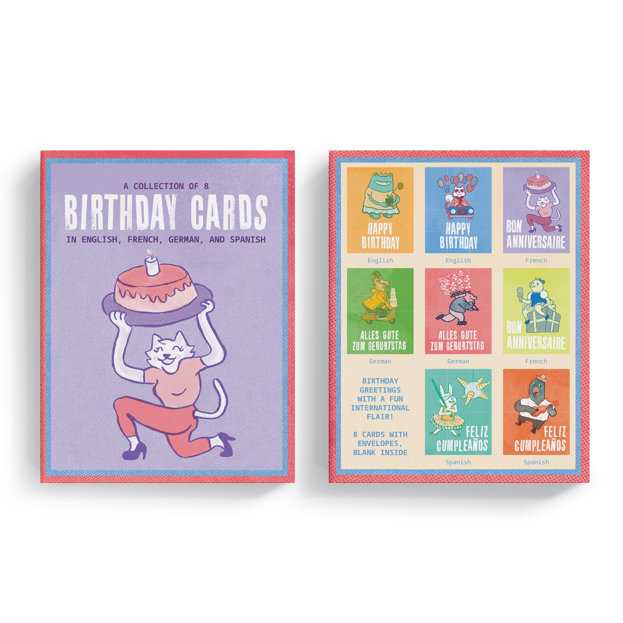 - 8 unique designs (2 cards per language)