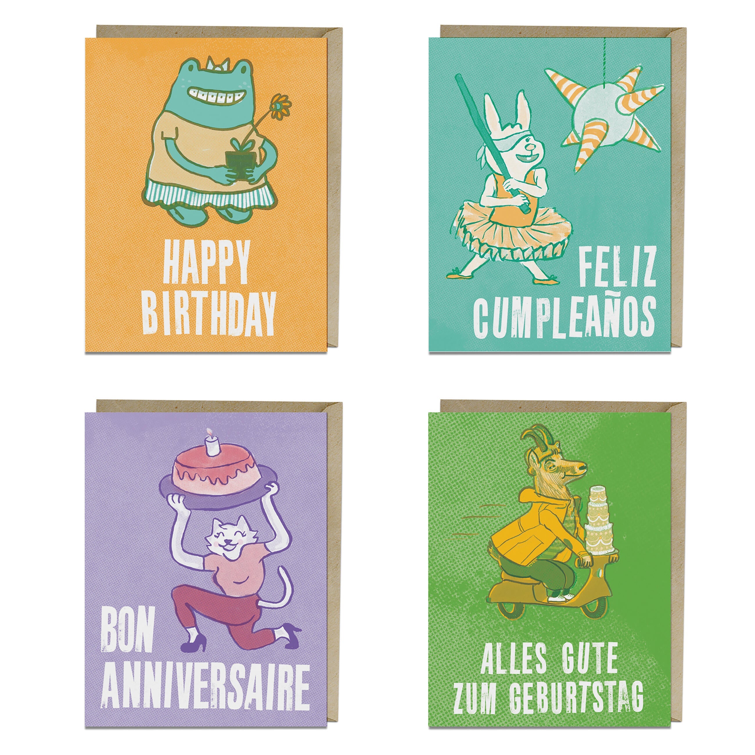 These birthday cards are really cute in a slightly nostalgic way. . . and perfectly all-purpose. Like, you could give one to a child OR a coworker OR your grandma. Plus, they say “Happy Birthday” in 4 different languages—English, French, German, and Spanish— which is just fun!