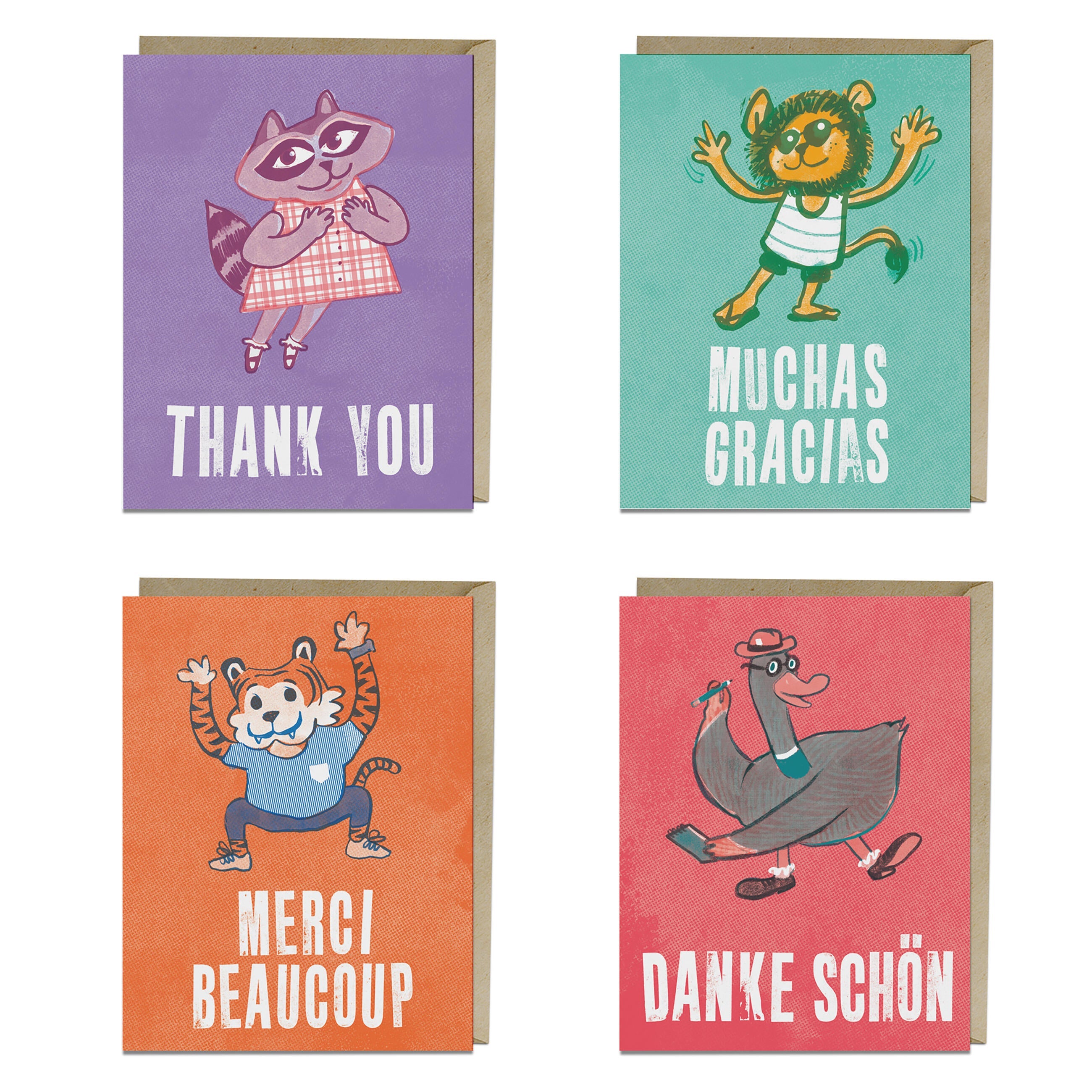 These thank you cards are really cute in a slightly nostalgic way... and perfectly all-purpose. Like, you could give one to a teacher OR a neighbor OR your own child. Plus, they let you say you’re thankful in 4 different languages—English, French, German, and Spanish— which is just fun!